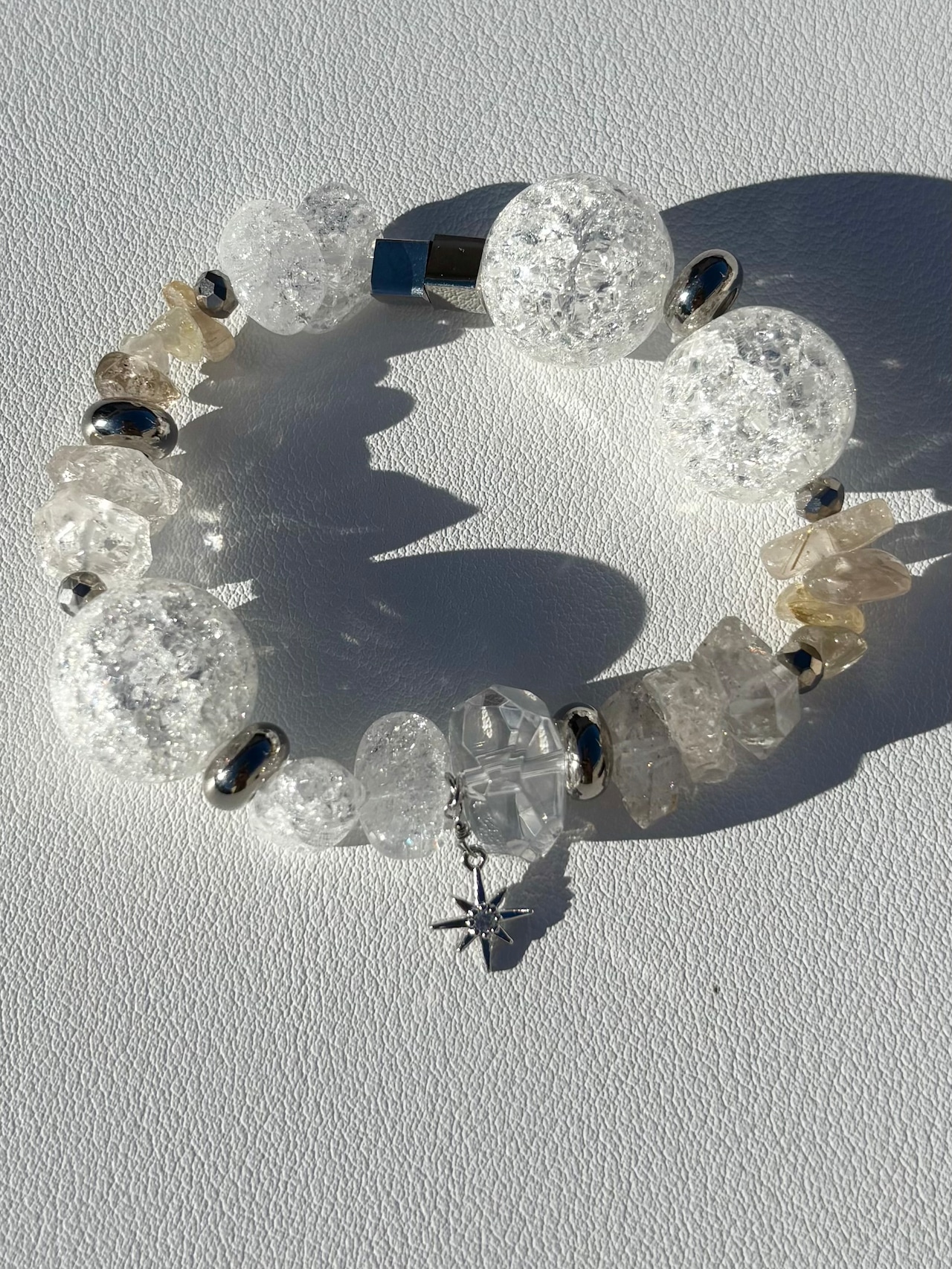 開運accessory クラッククリスタルとルチルクォーツ ブレスレット silver