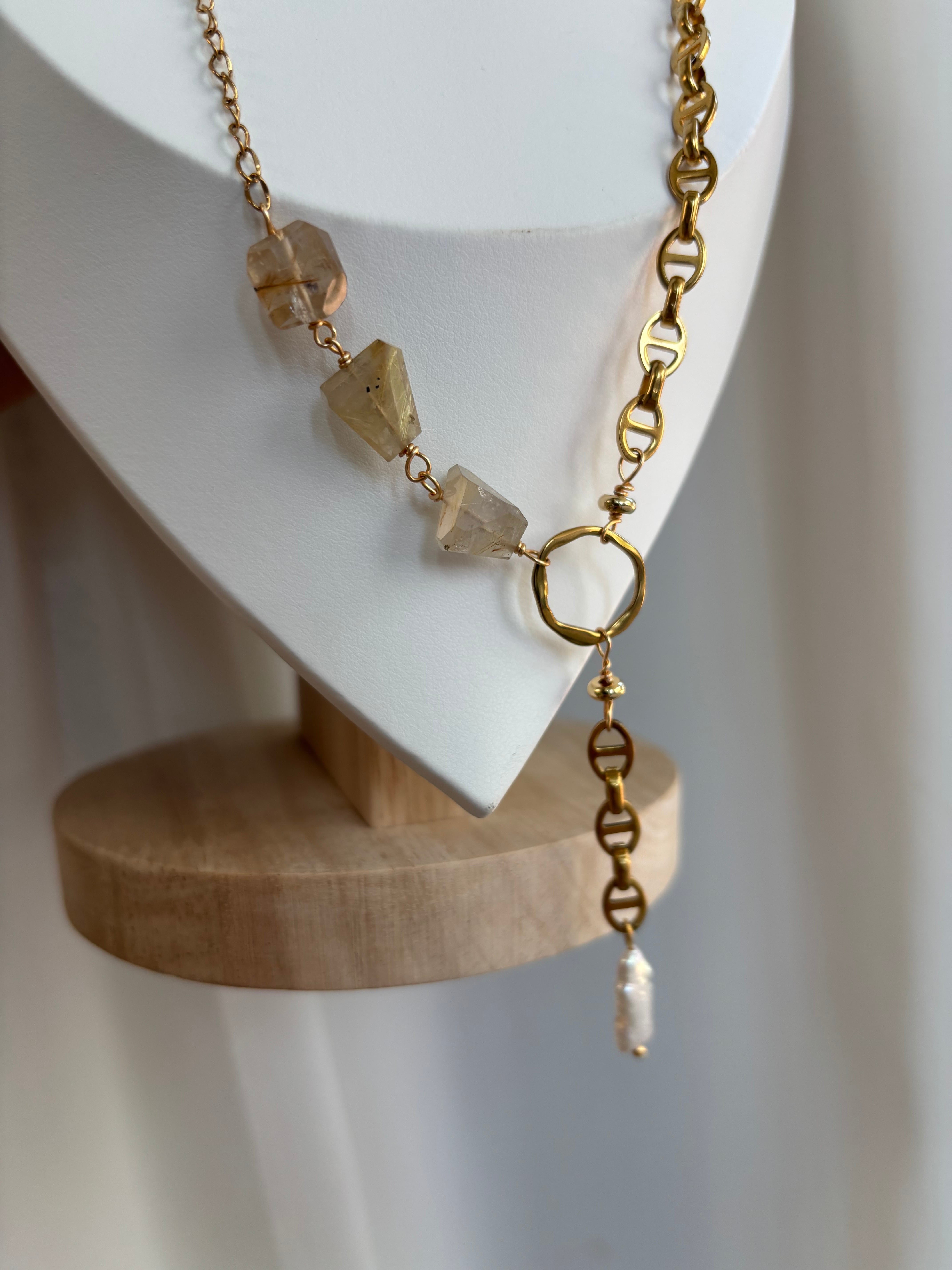 ルチルクォーツは運気を引き寄せる力を持ち、黄金の金針が貴方を導きます。この特別なネックレスが、あなたの魅力を引き立てます。