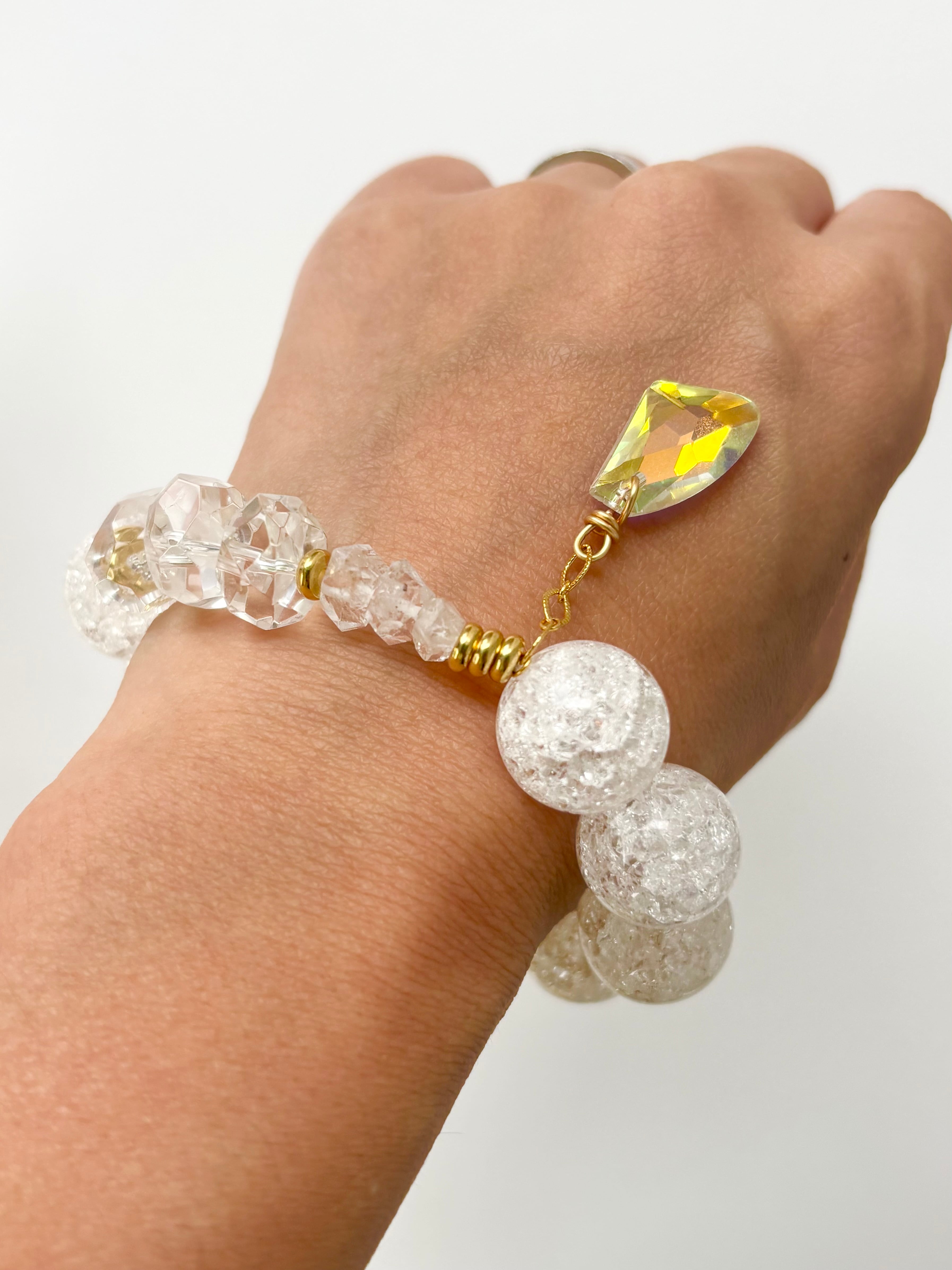 - 開運accessory サンキャッチャーとクラッククリスタル、パキスタン産ダブルポイントクリスタル、クリスタルAAAタンブルカットの三種類を贅沢に融合したブレスレット