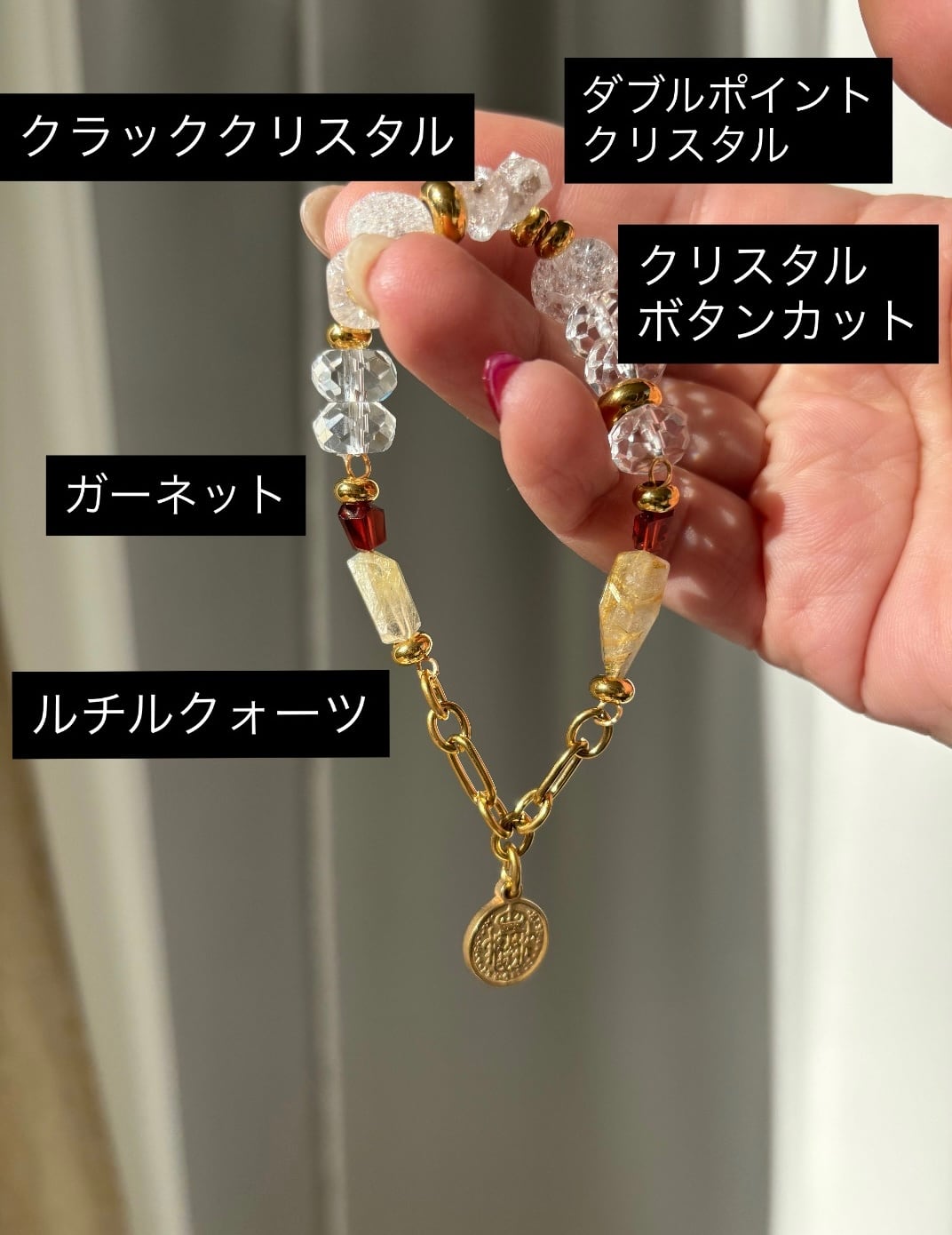 - 開運アクセサリー!ルチルクォーツ、ガーネット、クリスタルの組み合わせが、あなたに幸運と豊かさをもたらします!