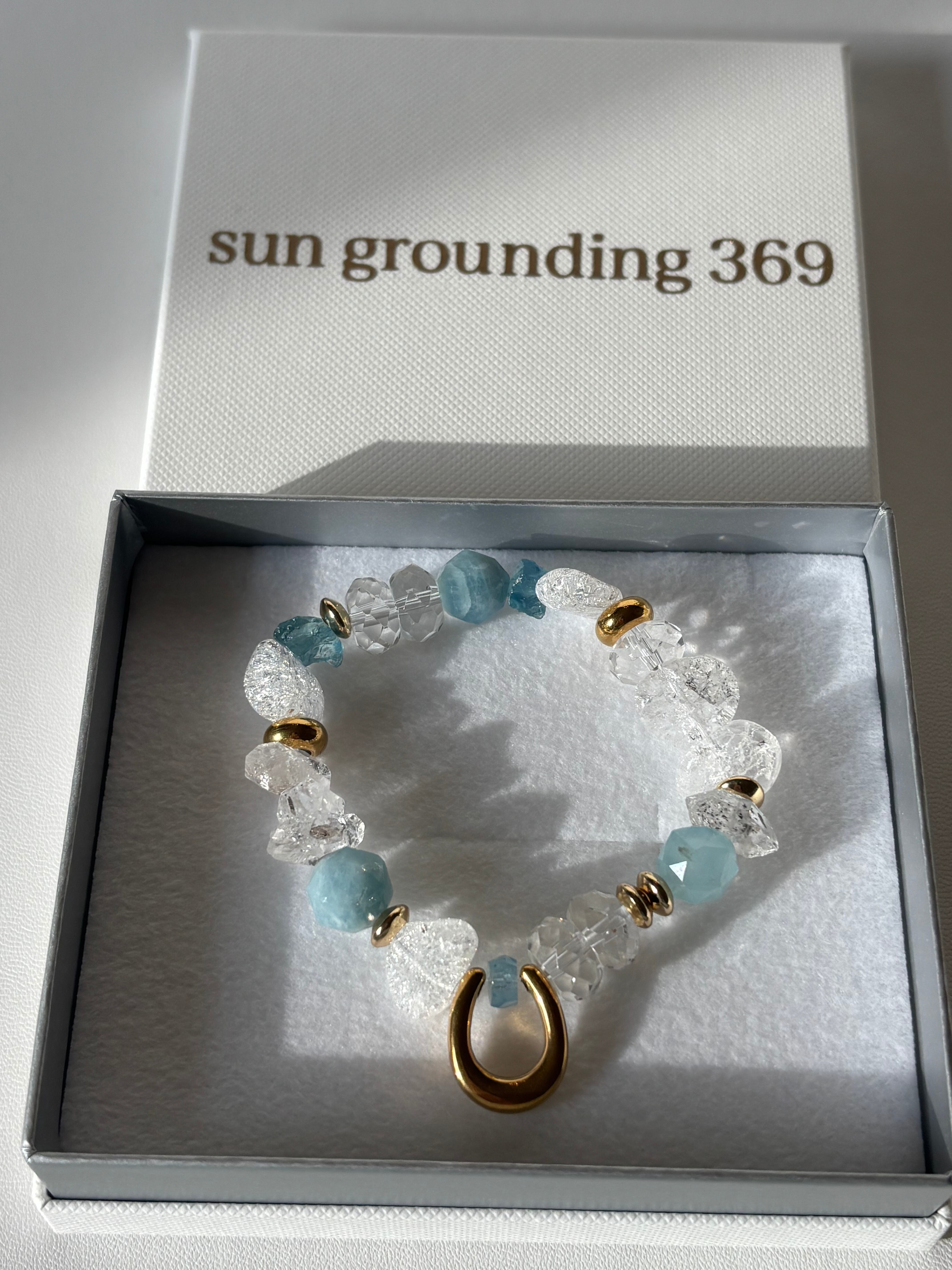 クリスタルの輝きは、周囲に明るさをもたらし、ポジティブなエネルギーを伝えます。アクアマリンとともに、心豊かなあなたをサポートします!