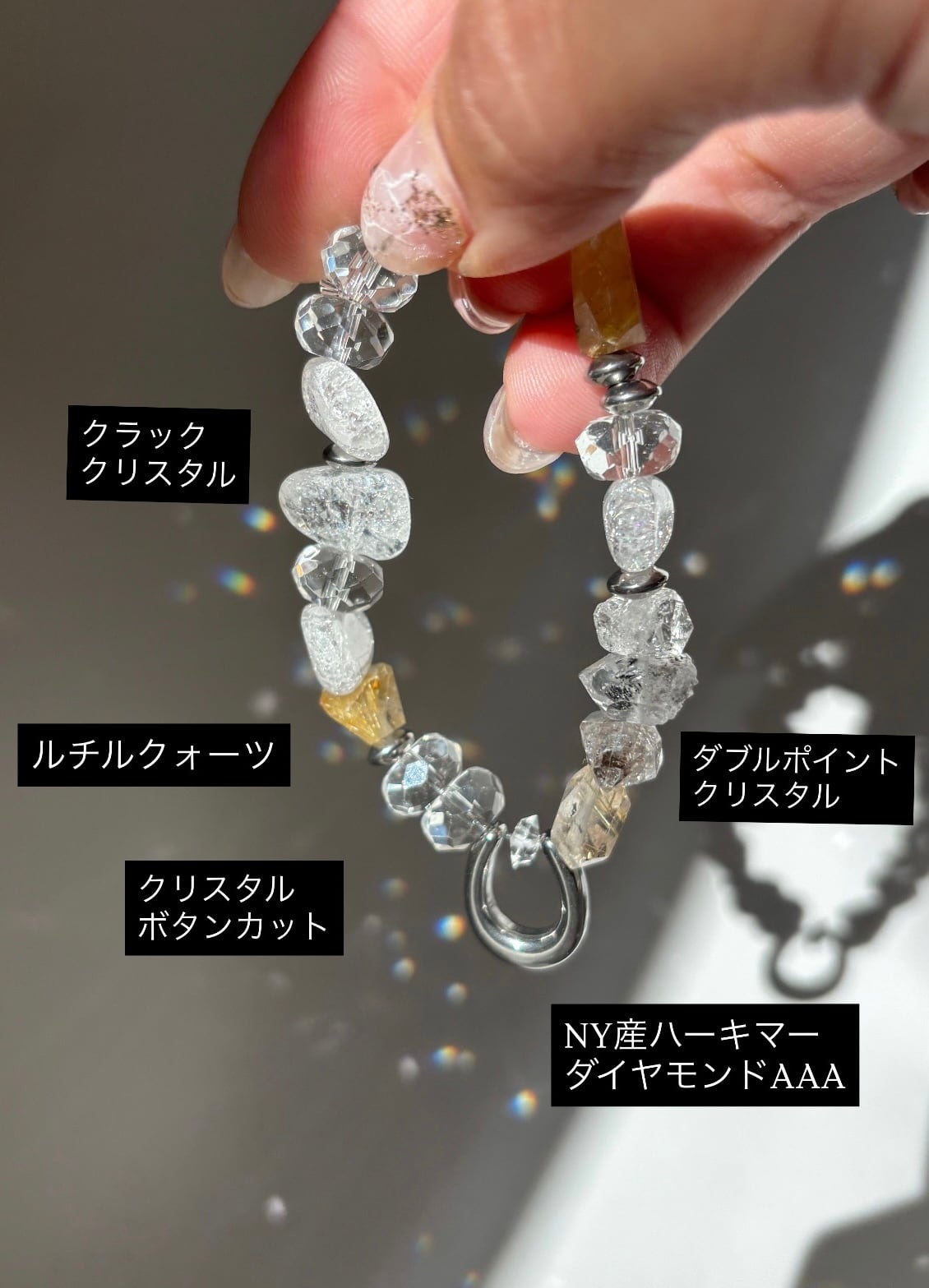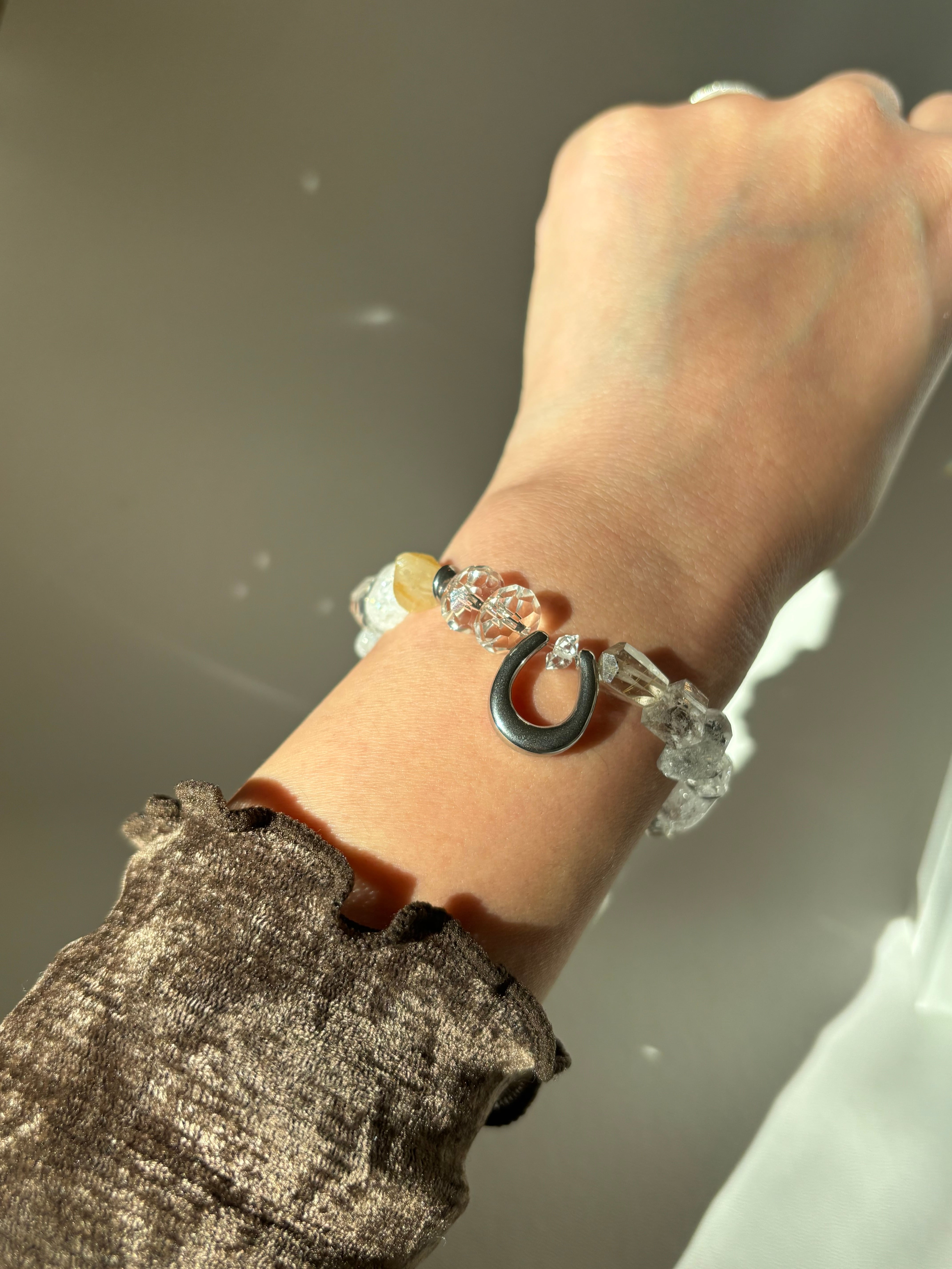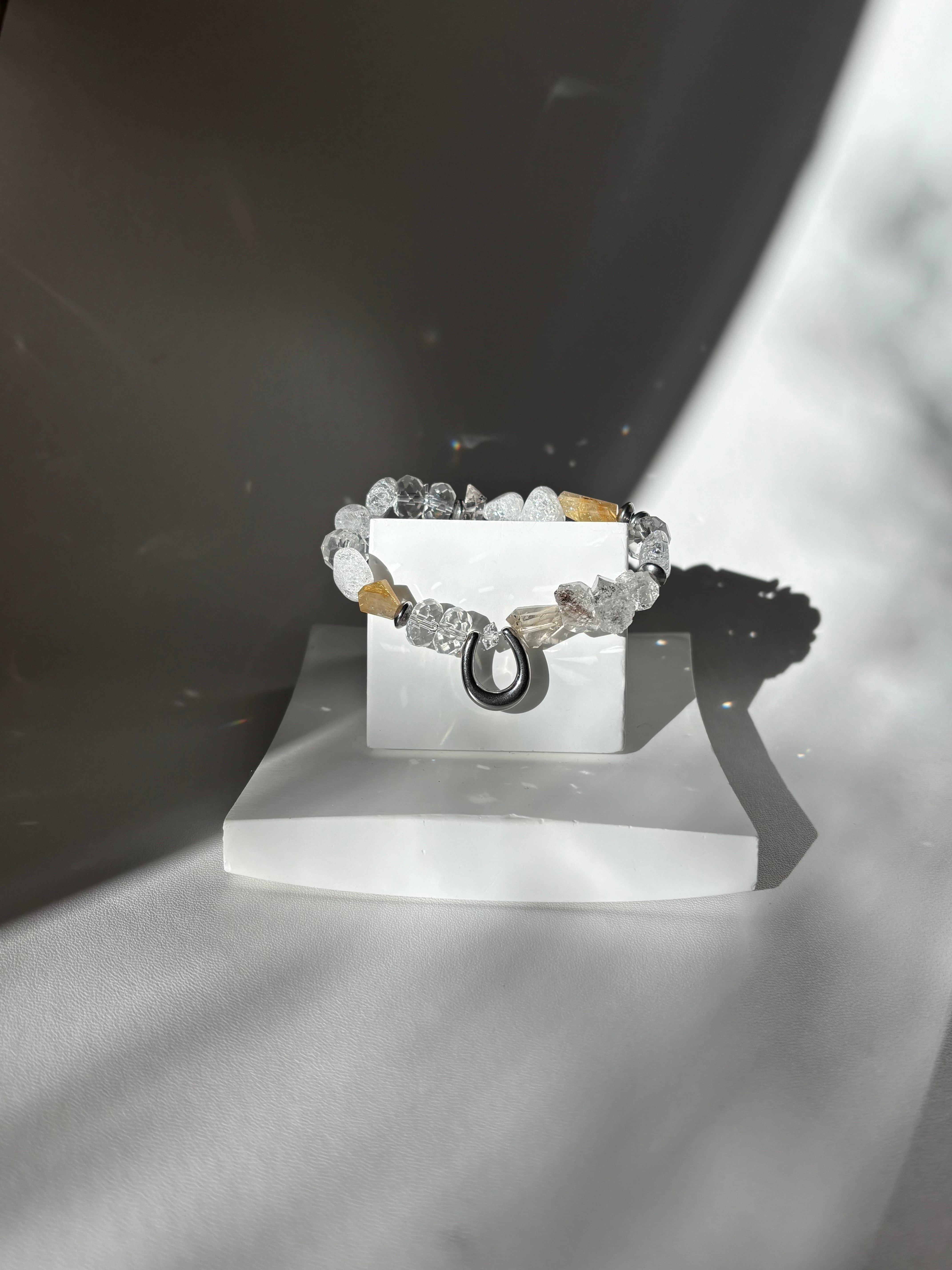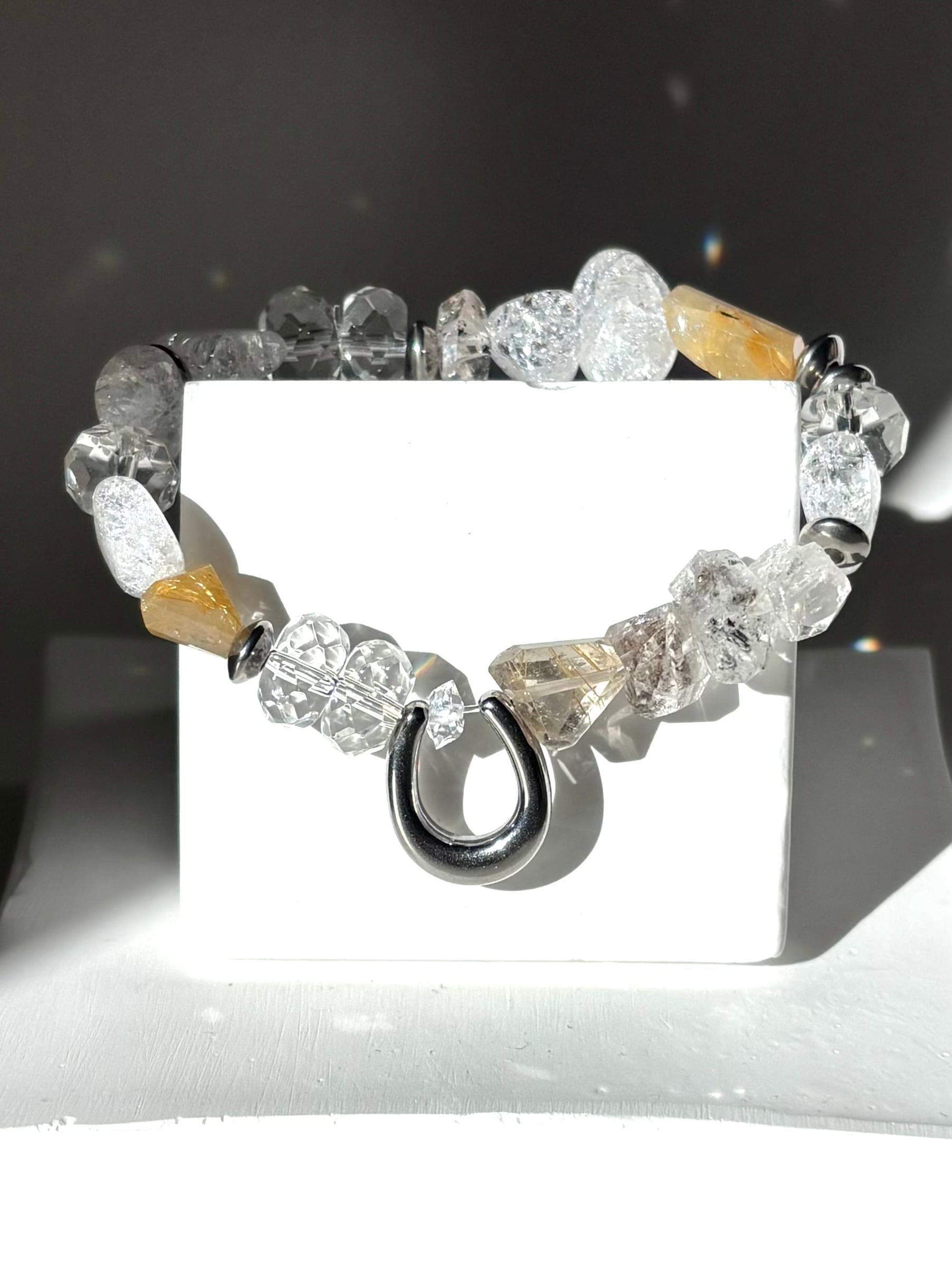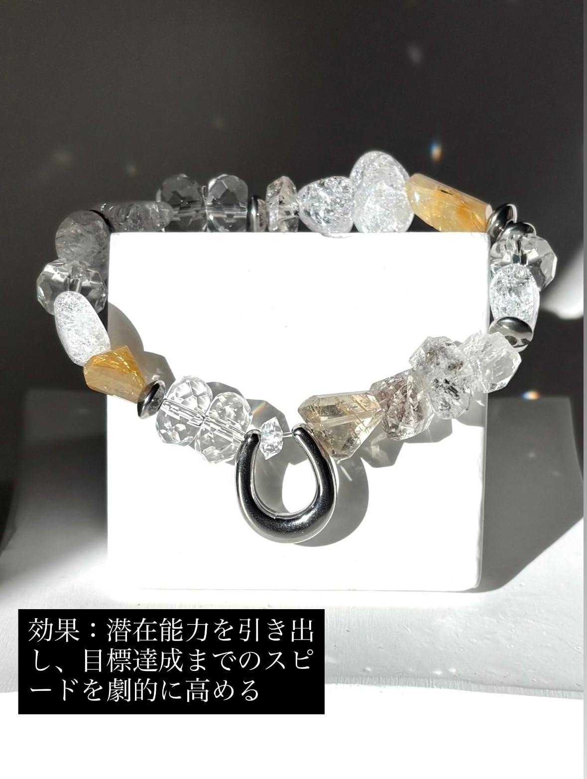 この「四月限定‼️先行解禁‼️ハーキマーダイヤモンド、ルチルクォーツ、幸運の器 ホースシューブレスレット」を身に付けて、あなたの運を最大限に引き寄せてみましょう!✨✨