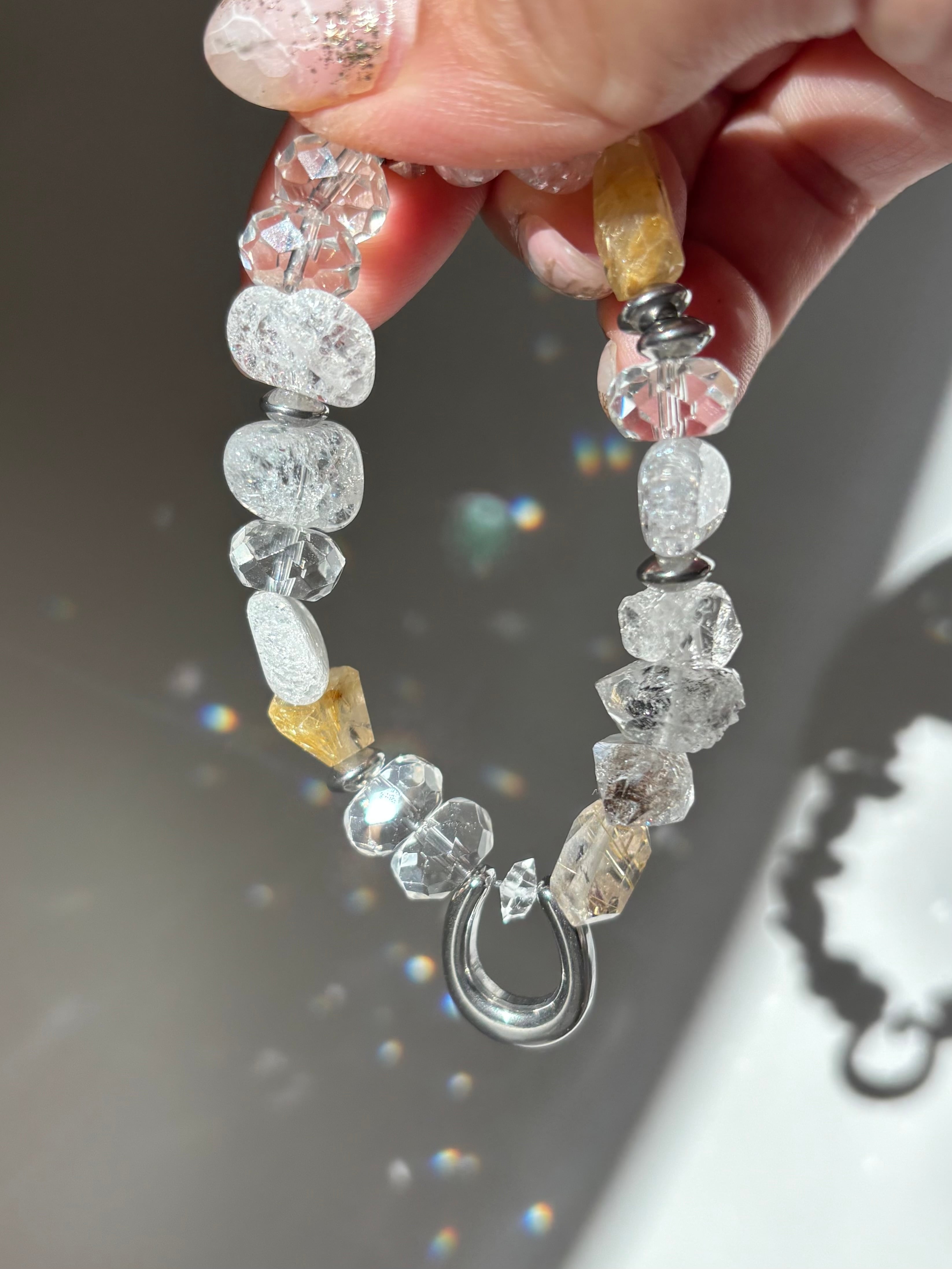 四月限定‼️ハーキマーダイヤモンド、ルチルクォーツ、幸運の器 ホースシューブレスレットシルバー