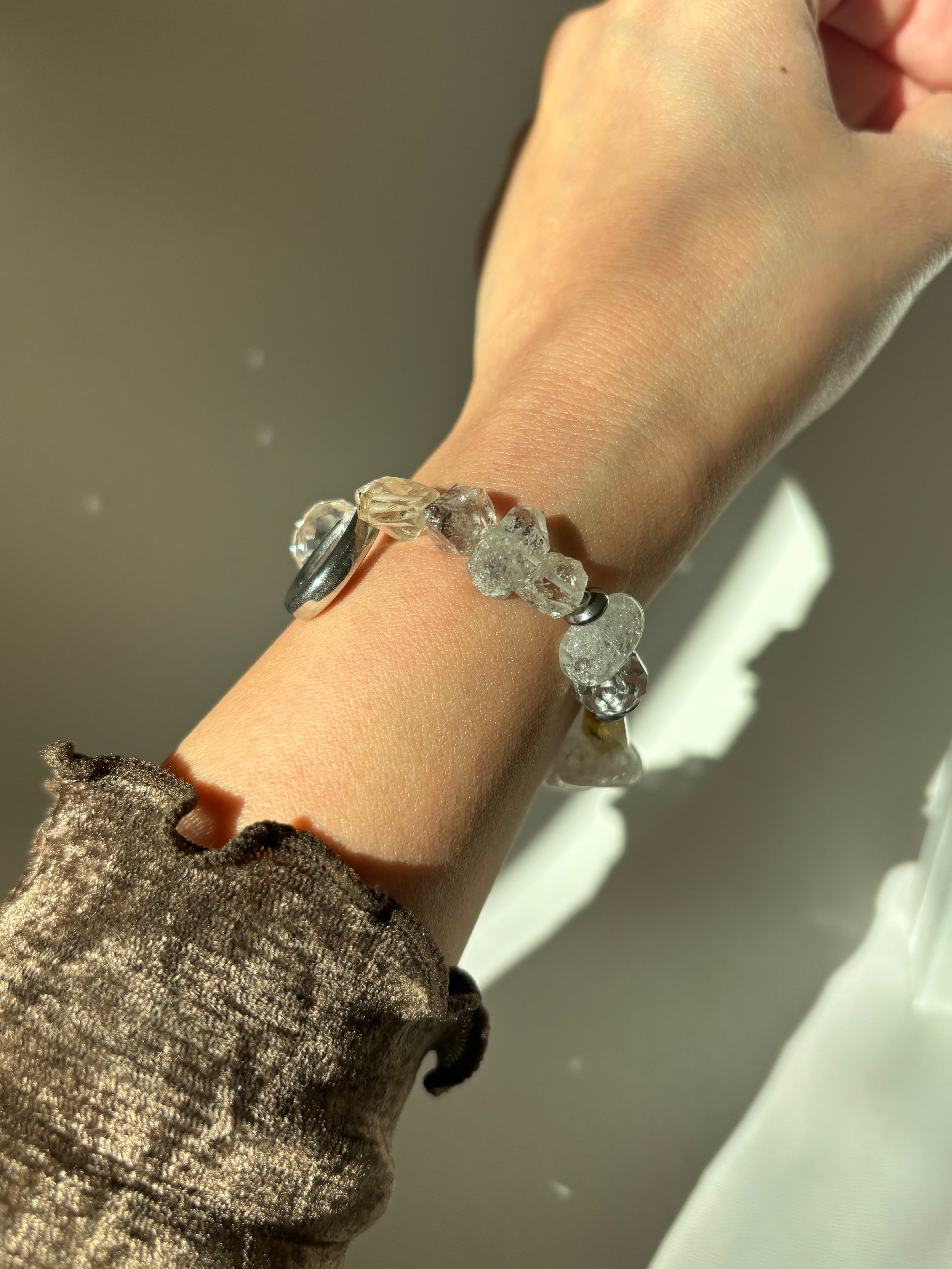 四月限定‼️高周波‼️ハーキマーダイヤモンド、ルチルクォーツ 、クリスタルブレスレット シルバー