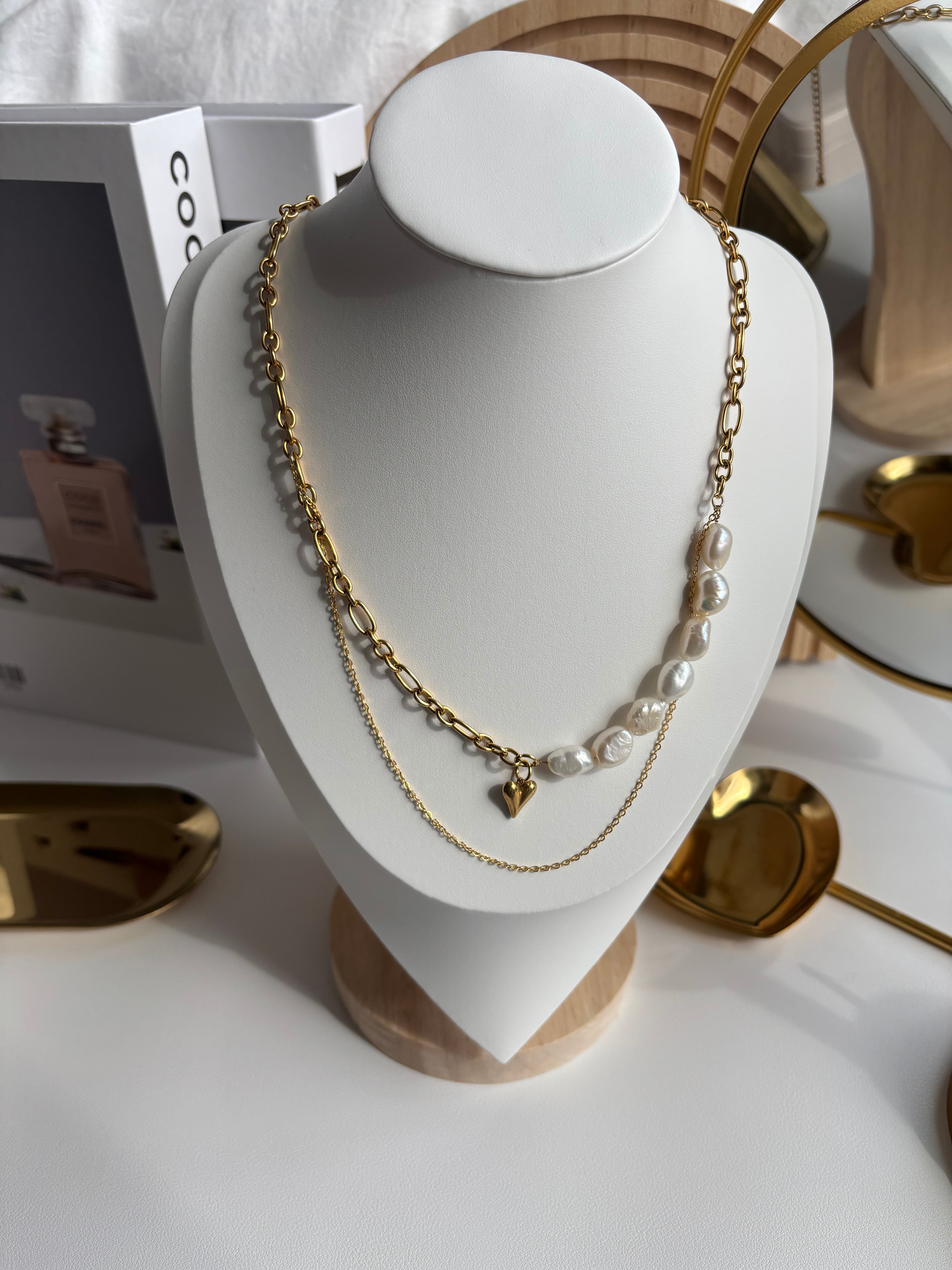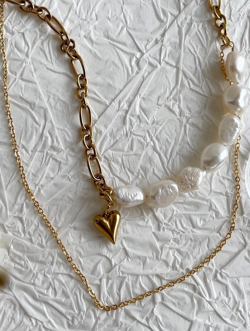 パールとハート2種類のチェーンを使用した